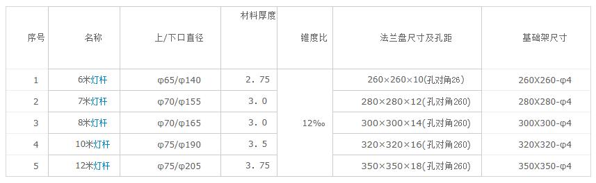 一、標(biāo)準(zhǔn)燈桿尺寸參數(shù)表
